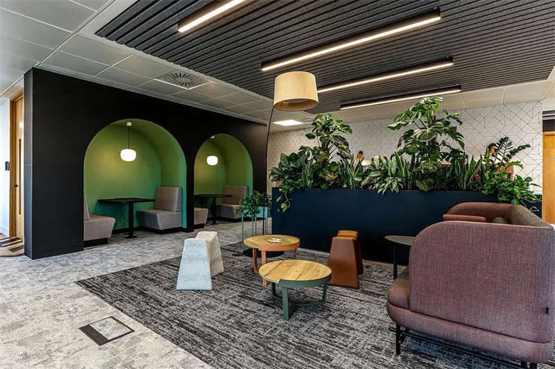 這個(gè)空間的風(fēng)格是對硅谷科技公司為團(tuán)隊(duì)組織空間的方式的認(rèn)可。其外觀和感覺甚至植物景觀的設(shè)計(jì)也與其它樓層有細(xì)微的不同,但仍與整體配色方案相一致。生物景觀設(shè)計(jì)是本案的一個(gè)重要組成部分,這一區(qū)塊交由專業(yè)的團(tuán)隊(duì)去做規(guī)劃,整個(gè)項(xiàng)目共整合了400多種不同的植物類型。