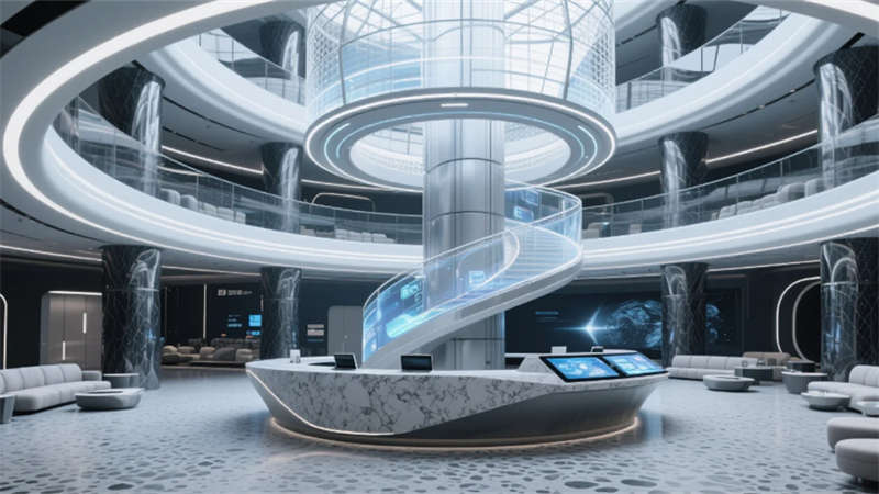 董事套間搭載270°環(huán)幕調(diào)光系統(tǒng),零重力懸浮沙發(fā)與體征監(jiān)測辦公桌塑造人性化高管空間,可變色納米書墻同步展示企業(yè)數(shù)據(jù)與藝術(shù)收藏。智控服務(wù)中樞集成AI咖啡機械臂與無人機物流站,能耗可視化墻實時反饋建筑運行數(shù)據(jù),形成智慧樓宇管理終端。全息決策會議室以六邊形沉浸艙突破傳統(tǒng)會議形式,4D環(huán)境模擬系統(tǒng)與電磁感應(yīng)軌道實現(xiàn)場景瞬時切換。