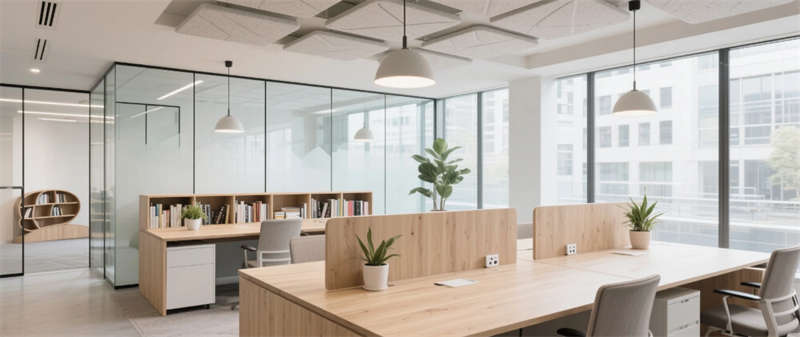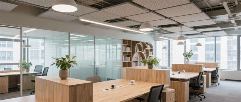 獨立辦公空間以溫潤木質包裹私密場域,隱藏式收納與可變形沙發(fā)實現(xiàn)功能復合;封閉會議室通過智能調光玻璃平衡科技效率與人文溫度,聲學織物墻面如城市肌理般起伏。社交樞紐咖啡吧保留混凝土原始粗糲感,苔蘚綠植墻與古董吊燈碰撞出工業(yè)浪漫,成為思想交鋒的容器。階梯式報告廳以水磨石曲面呼應合肥山水脈絡,可開合隔斷延展空間維度。