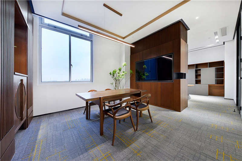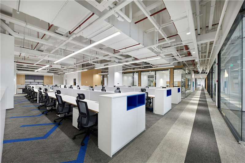 開放辦公區打破了傳統的辦公環境,隨時溝通無障礙,開啟高效與人性化辦公新模式。打破封閉,開闊的視野和舒適的辦公椅,紓解工作的疲憊,錯落有致的線條對空間自由分割,構建出的簡約造型和光影效果讓空間在錯綜的線條中無限延伸。