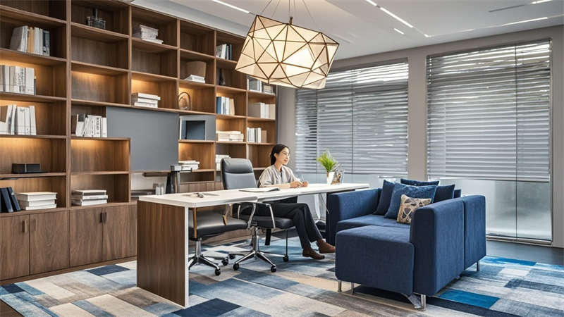 智能系統集成包括電動百葉簾、會議預約系統、環境監測顯示屏等科技元素,茶水間與休息區特別設置空氣凈化綠植墻。燈光設計采用3000K-4000K色溫可調系統,走廊采用線性引導光帶提升導向性。