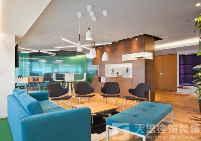辦公區域的設計:設計師在設計的時候,采用不規則的辦公布局,在設計師看來這樣的設計可以各取所長、各補所短,在開放空間布局的同時,為每一個員工打造一個屬于自己的私人空間,不規則所打造的辦公空間,讓空間充滿了活力。