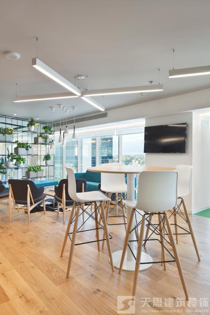 茶水間的設計:設計師在設計的時候,將其安置在一個獨立的空間之中,此處既有采光的照射,同時也有溫馨、舒適的空間氛圍,設計師希望為員工打造一個無壓力的空間,在此處員工可以放空自己,讓自己在忙碌中停留下來,休息之后充滿精力的在此出發,因為休息就是為了下一次的開始。