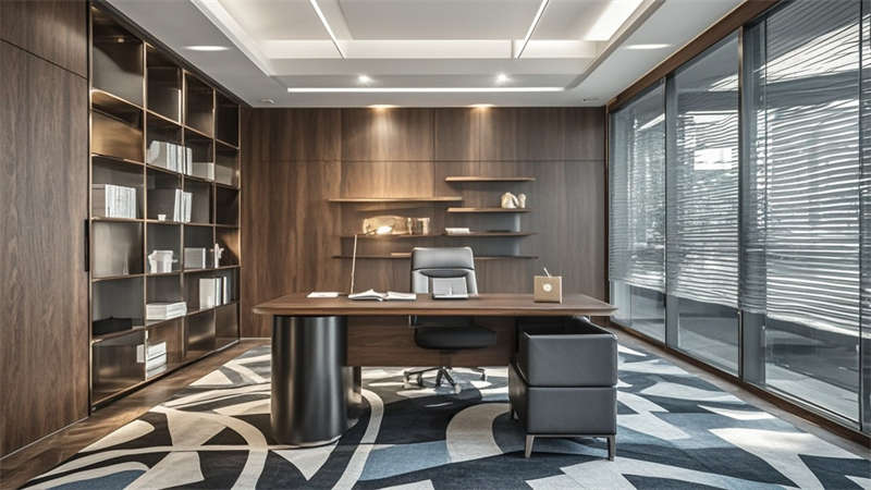 本1500㎡現(xiàn)代簡約辦公室設(shè)計以'高效協(xié)作·人文關(guān)懷'為核心,采用模塊化空間布局提升使用彈性。主色調(diào)選用淺灰、白、木三色系,局部點綴企業(yè)深藍(lán)色強化品牌認(rèn)知。開放式辦公區(qū)采用1.2m×1.8m標(biāo)準(zhǔn)工位模塊,通過玻璃隔斷實現(xiàn)90%自然光滲透率。智能照明系統(tǒng)根據(jù)日照強度自動調(diào)節(jié)色溫,全年節(jié)電率達(dá)35%。核心筒改造區(qū)運用曲面木飾面弱化建筑結(jié)構(gòu),形成自然交流節(jié)點。聲學(xué)設(shè)計方面,蜂窩吸音板(NRC 0.85)與隔音艙(STC 52)組合控制噪音污染。茶水區(qū)采用磁吸軌道插座系統(tǒng),支持設(shè)備靈活接入。所有家具均符合WELL建筑標(biāo)準(zhǔn),辦公椅配備6向調(diào)節(jié)功能。通過BIM技術(shù)實現(xiàn)管線綜合,保留3.2米凈高營造開闊感。