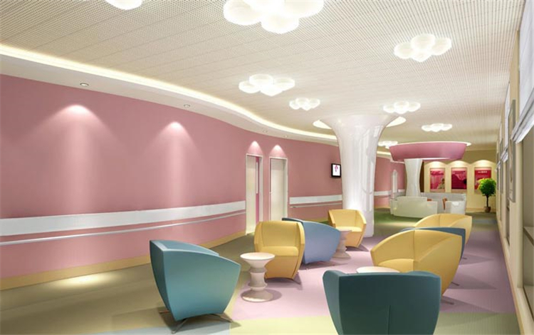 設計理念: 婦女兒童醫(yī)院裝修設計之初,設計師就不斷吸收建筑設計中“母親懷抱小孩”的理念。在經(jīng)過和業(yè)主之間的交流,深入了解醫(yī)院的院系文化、歷史背景、管理理念和價值觀取向,結(jié)合婦女兒童這兩種特定人群進行設計思考。醫(yī)院以產(chǎn)科、婦科、兒科為主要服務對像,設有女性溫馨門診,婦科腔鏡中心、兒童“卡通”門診。病區(qū)設有中高檔床位90張,擁有VIP尊貴病房,設計師為了讓病房家庭化,對病房進行了重點設計,定位于溫馨的病房。在病房區(qū)域的大廳,設計師引入了自然的光照、加入了休閑的風格,定位于陽光休閑大廳。音樂候診咖啡吧,全方位滿足客患個性化需求,營造生態(tài)化、人文化就醫(yī)環(huán)境。