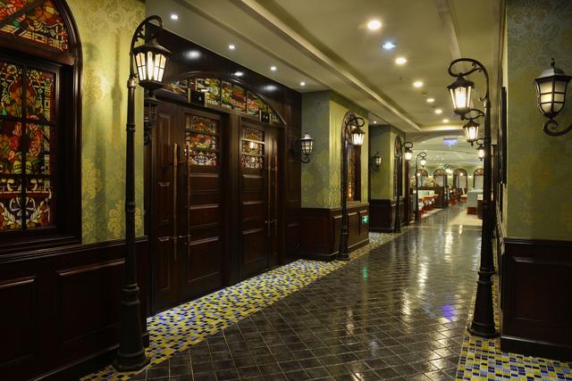 設計說明:整個餐廳以民國時期的重慶來打造,以民國建筑和民俗風情為藍本,以民國時期六對著名的戀人作主題,就連服務員的服裝也特別制作為民國學生裝及軍統軍裝。紙醉金迷,恍若隔世。
