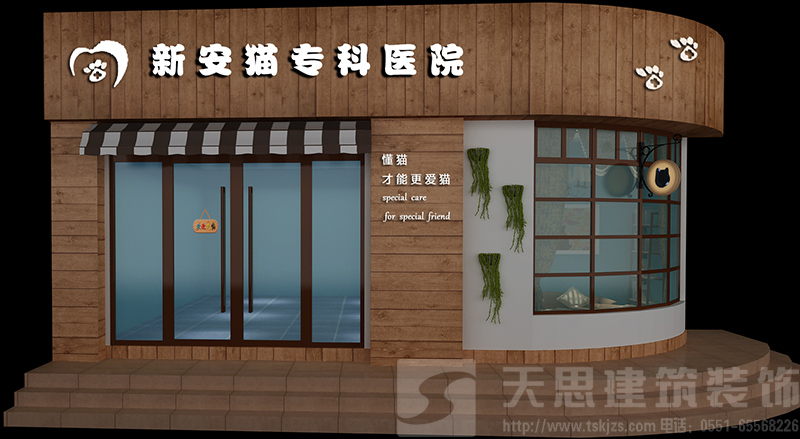 工程名稱:貓科醫院 設計師:葉曉麗 面積:150平米 項目地址:廬陽區北一環沿河路 設計簡介:新安貓科醫院是一家專業為寵物貓提供醫療、護理以及美容的醫院。門頭設計