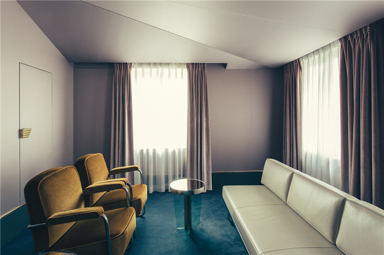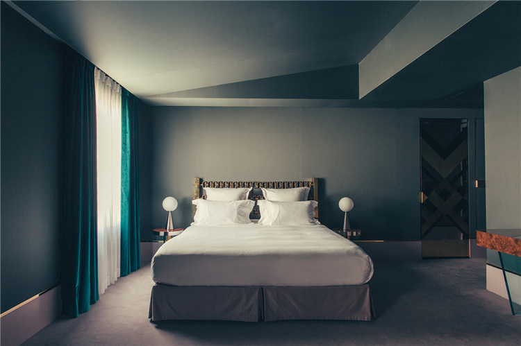 這次給大家介紹的酒店提供25間客房,設(shè)想為私人公寓,通過六種不同的場(chǎng)景實(shí)現(xiàn)裝飾藝術(shù)美學(xué)。顏色和面料,從芥末黃到勃艮第紅,森林綠和天藍(lán)色成為了工匠制作的藝術(shù)和裝飾物的背景。