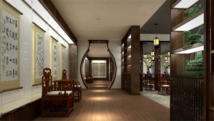 在本次設計中,設計風格毫無疑問就是傳統的中式風格,因為書法藝術的背景是中國的傳統文化,且書法植根于中國傳統文化土壤,傳統文化是書法賴以生存、發展的背景,故此為了保證書法的自然與純真,中式設計自然當之無愧、無可替代。