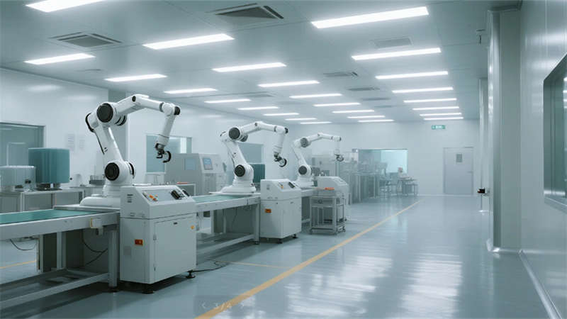 生產空間聚焦高效與潔凈,智能機械臂單元與模塊化管線系統滿足精密材料制造需求,冷色調照明強化科技嚴謹感。研發區域突破傳統廠房格局,落地窗引入自然光與園區景觀,垂直綠墻凈化空氣的同時激發創造力。