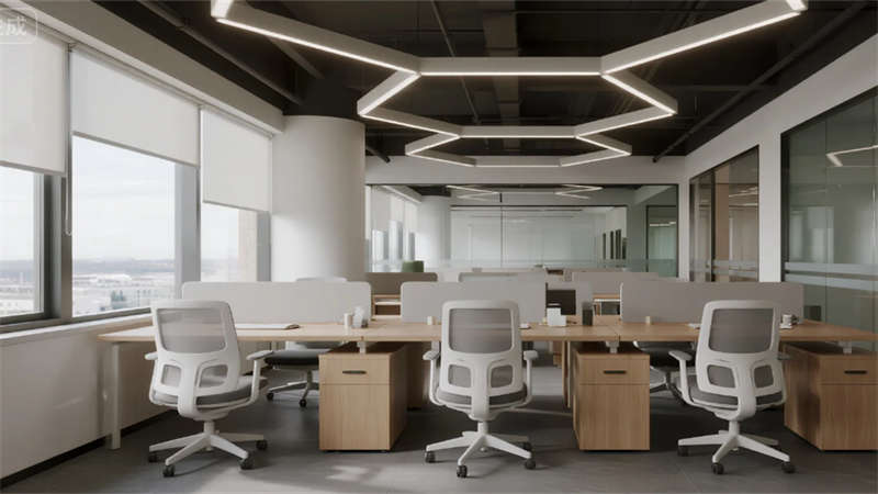 辦公系統實現人性化分層:開放式工位促進團隊協作,經理室玻璃隔斷保持溝通透明,總裁空間則通過地域景觀藝術品傳遞領導力視野。休憩區植入生態庭院,本土植物與耐候鋼材質模糊室內外界限。