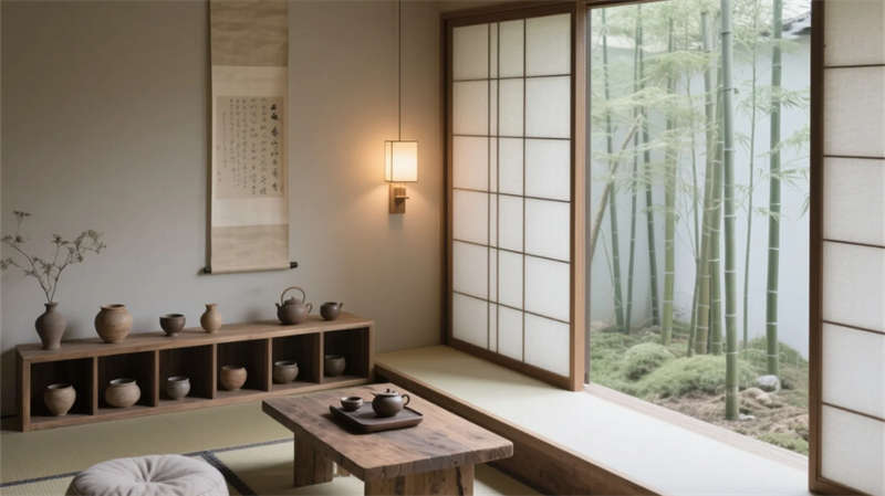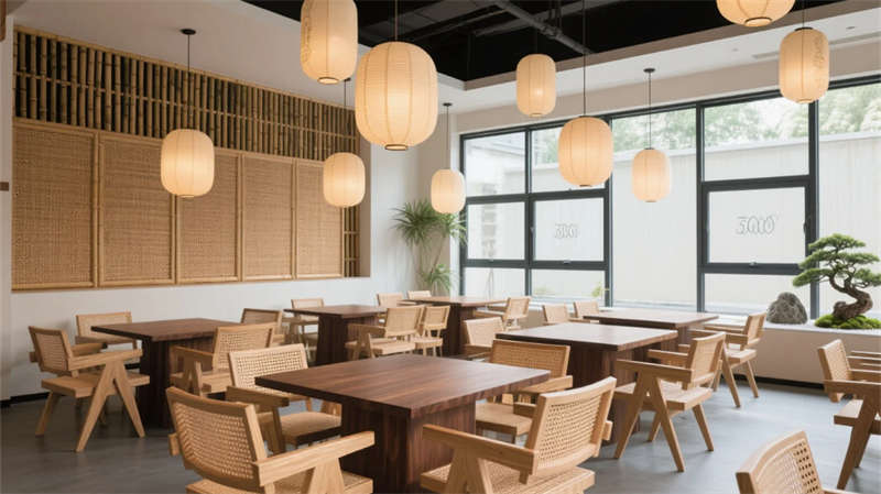 大堂以格柵天花與山水背景墻定調,光影交錯間傳遞寧靜力量。餐廳借竹編與紙燈演繹傳統匠心,窗外庭院景觀延伸視覺層次。客房摒棄繁復裝飾,棉麻材質與低飽和度色彩引導深度放松,套房通過屏風巧妙劃分動靜區域。茶室以博古架和宣紙屏風構筑禪修意境,而庭院花園的枯山水與竹影,則成為自然與建筑的共生隱喻。