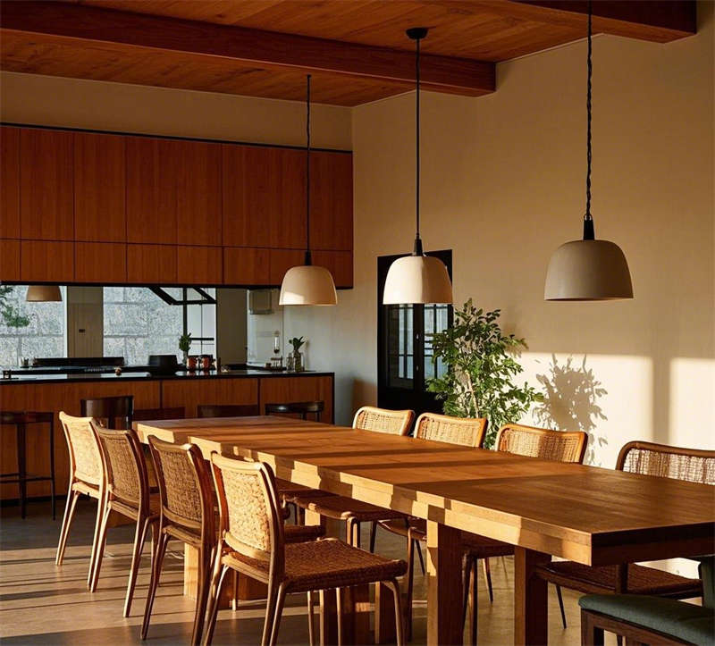 這套1000平民宿設(shè)計(jì)以自然簡(jiǎn)約風(fēng)格為核心,營(yíng)造出溫暖舒適、貼近自然的居住體驗(yàn)。整體空間以原木色調(diào)為主,搭配米白色、淺灰等柔和色彩,輔以綠植點(diǎn)綴,呈現(xiàn)出清新自然的氛圍。大堂以原木色前臺(tái)和藤編吊燈為亮點(diǎn),搭配落地窗引入充足光線(xiàn),營(yíng)造出溫馨的迎賓空間。客廳采用開(kāi)放式布局,原木地板與編織地毯相得益彰,搭配圓形茶幾和落地?zé)簦蛟斐鲚p松愜意的休閑區(qū)域。餐廳延續(xù)自然風(fēng)格,長(zhǎng)桌與藤編餐椅的組合簡(jiǎn)潔大方,開(kāi)放式廚房與吧臺(tái)的設(shè)計(jì)增強(qiáng)了空間的互動(dòng)性。臥室分為兩種風(fēng)格,一種以藤編床頭和棉麻床品為主,營(yíng)造出舒適的睡眠環(huán)境;另一種采用日式榻榻米設(shè)計(jì),搭配推拉門(mén)和竹林景觀(guān),傳遞出寧?kù)o禪意的氛圍。浴室同樣注重自然元素的運(yùn)用,圓形浴缸與綠植的結(jié)合讓人仿佛置身于自然之中,而日式風(fēng)格的浴室則通過(guò)竹制裝飾和庭院景觀(guān),進(jìn)一步強(qiáng)化了寧?kù)o放松的體驗(yàn)。戶(hù)外庭院以石板小路和木質(zhì)平臺(tái)為主,搭配休閑桌椅和綠植環(huán)繞,為客人提供了一個(gè)親近自然的戶(hù)外休閑空間。整體設(shè)計(jì)注重材質(zhì)與光影的運(yùn)用,將自然元素與現(xiàn)代簡(jiǎn)約風(fēng)格完美融合,打造出一個(gè)舒適、放松的民宿空間。