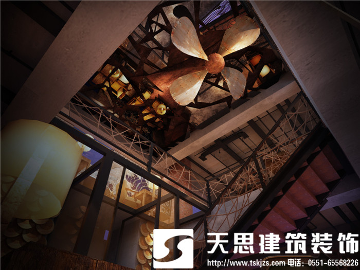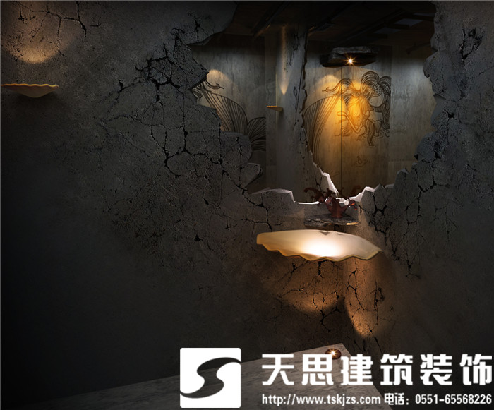 銅須水族主題會所,空間造型大氣磅礴,初入室內即被粗獷自然的設計所震撼。給人一種無限擴張的空間力量??臻g材料和色彩的運用細膩而大膽,情節化的場景布置與戲劇性的張力設計營造出豐富的視覺享受。