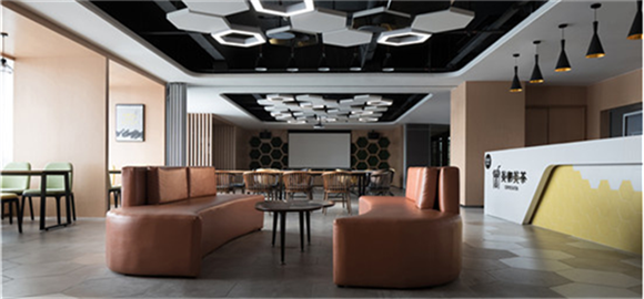 通過空間調(diào)度,模糊各個工作區(qū)域間的界限,打造既開放、又不乏私密性的辦公區(qū)。除此之外,曲線與直線在空間共存,線條的形式感使辦公室充滿現(xiàn)代化與創(chuàng)意十足,極大的在視覺上滿足了客戶的營銷訴求,構(gòu)建來人第一感性認知。