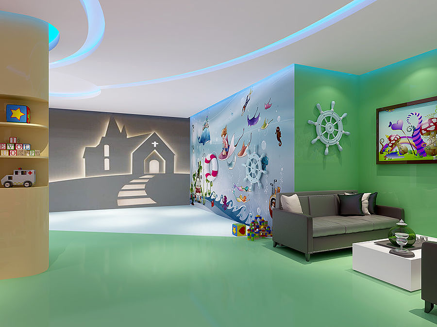 該設計以海洋樂園為主題,整體設計,顏色繽紛艷麗,造型充滿童趣,讓大人和孩子都樂在其中.每個空間又都有他不同的味道,但最終都和親子這個元素相呼應,親子,海洋,樂園,這幾種元素融合在一起,一定是一個美妙的兒童天堂.