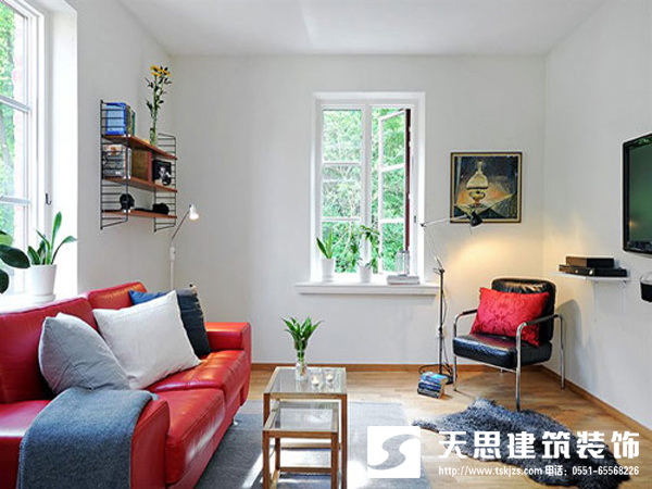 清透的白色客廳里擁有充裕的自然光線,窗外的綠意濃濃點綴北歐客廳裝修設計,別致的擱架裝飾背景墻,房間的角落被精心的座椅裝潢的溫馨舒適,現代時尚感的紅色皮藝沙發在追求質感的同時帶來青春的熱情,適合年輕人的風格,靈巧的玻璃小茶幾在綠色植物的呼應下讓北歐客廳裝修設計成為經典。