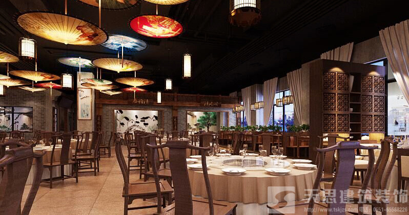 中式餐廳的設計講究清新、雅致的理念,也更加注重用餐情調。在設計中不但注意精致和實用兼具,更希望通過餐廳整體布局把握,傳達出對人們生活的重視和懷舊的留念。同時運用中式傳統風格的元素,通過現代設計師的手法,得到了一個具有濃郁中式風情的餐廳。