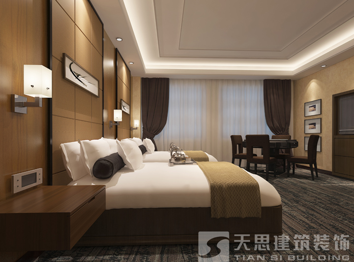 第一,商務(wù)酒店房間,這樣的房間一般是顧客外出出差而選擇的房間,這樣的房間裝修預(yù)算一般在8000一間。因為它的室內(nèi)裝修要求很高,一般是有客廳和房間區(qū)分的,房間里的設(shè)備都很齊全并且極其高檔。