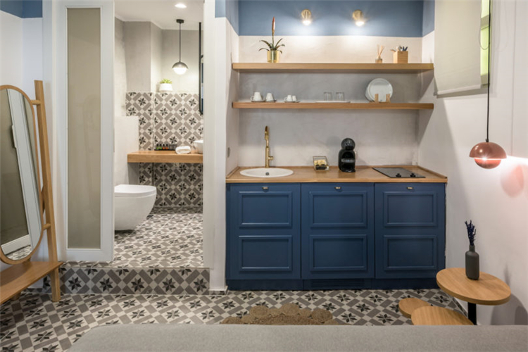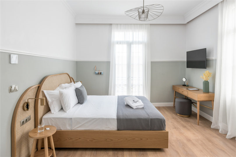 所有的地板都換成了天然橡木板和幾何水泥瓦。在整個客房中有一些小的現代細節:如皮革墻壁掛鉤,極簡主義的植物增添了現代感。
