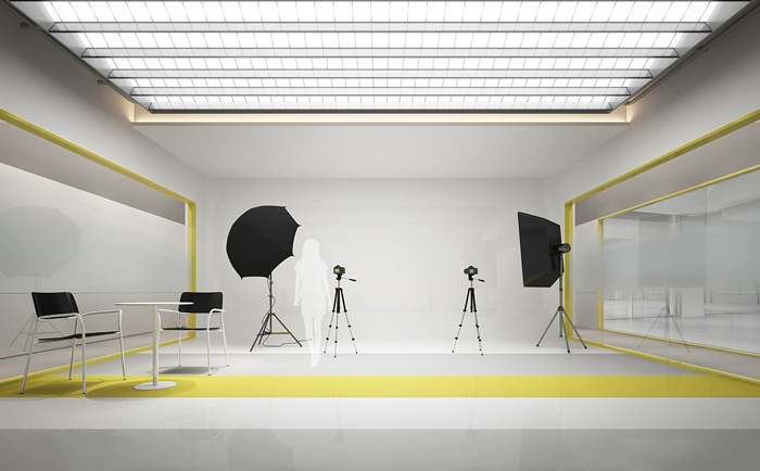 此處藝術學校設計中,告別了五彩斑斕的顏色,突出了空間的簡潔與干凈,用黃色做為點綴色提升空間的趣味性。