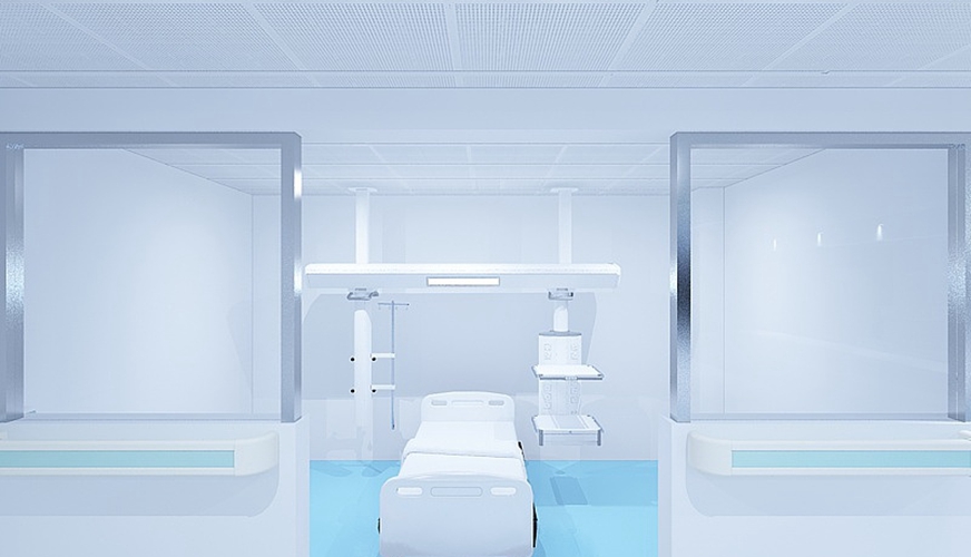 在本案中,設(shè)計(jì)師一改醫(yī)院的常規(guī)風(fēng)格,大膽使用了藍(lán)色為基調(diào).藍(lán)色向來(lái)代表著冷靜、睿智,也能起到平復(fù)人們情緒的暗示作用,這次使用在醫(yī)院中,更充滿了科技感.為與醫(yī)院定位相匹配,室內(nèi)并無(wú)多余的裝飾品,干凈、清爽是本次設(shè)計(jì)的最大特點(diǎn).同時(shí),設(shè)計(jì)師也非常注重空間細(xì)節(jié)的營(yíng)造,如醫(yī)院的導(dǎo)視,就從病人的角度考慮,清晰顯眼,指向明確.