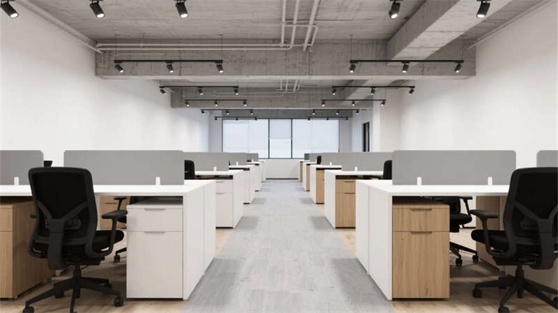 步入空間,現代簡約工業風以原始肌理與智能元素碰撞出獨特韻律。淺灰水泥與原木的基調貫穿始終,裸露結構構件與暖光線性照明形成張力,綠植垂直裝置在冷峻材質中注入自然呼吸感。開放式辦公區模塊化桌椅靈活組合,落地窗引入天光,軌道射燈精準聚焦高效場景;獨立辦公室的磨砂玻璃隔斷兼顧隱私與通透,深胡桃木桌面沉淀商務氣質。