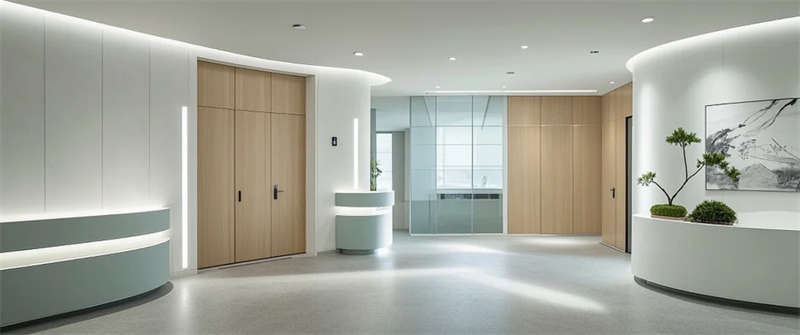 這個醫(yī)療空間以自然療愈為語言重塑傳統(tǒng)醫(yī)院體驗。建筑內(nèi)部流動的淺木與灰綠色系,搭配原生綠植景觀墻,模糊了室內(nèi)外邊界,讓自然光與綠意成為治愈媒介。門診走廊的弧形墻面消解機構(gòu)冰冷感,兒童診區(qū)的森林投影與云朵軟包,用敘事化設(shè)計緩解診療焦慮。