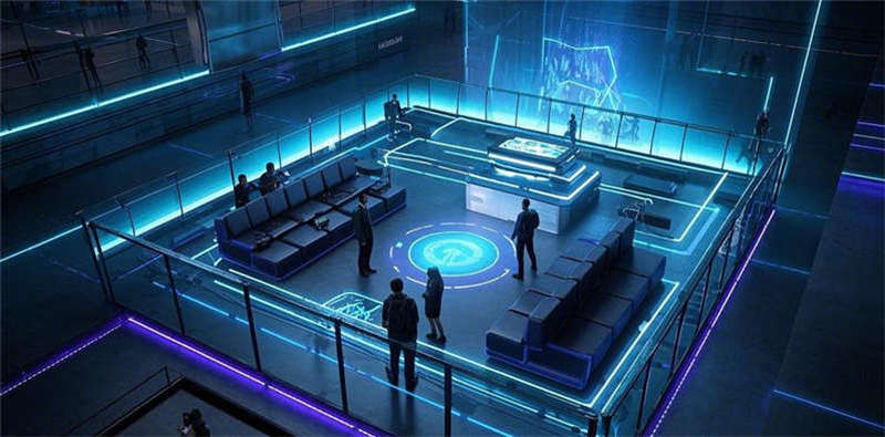 本次2000平方米展廳設(shè)計以現(xiàn)代科技與互動體驗為核心,打造多功能展示空間。入口區(qū)域?qū)挸髁粒鋫浯笮蜆?biāo)識和藝術(shù)裝飾,營造高端迎賓氛圍。主展區(qū)采用開放式布局,結(jié)合LED屏幕和互動裝置,突出展品的科技感。產(chǎn)品展示區(qū)設(shè)計精致,燈光聚焦展柜,搭配互動觸摸屏,提升參觀體驗。互動體驗區(qū)配備虛擬現(xiàn)實設(shè)備和沉浸式裝置,讓觀眾感受科技魅力。會議與演講區(qū)設(shè)計專業(yè),階梯式座椅和大型投影滿足活動需求。休息與洽談區(qū)溫馨舒適,綠植裝飾和吧臺營造輕松氛圍。多媒體展示區(qū)弧形屏幕與環(huán)繞音響帶來震撼視聽效果。展廳外觀現(xiàn)代大氣,夜景燈光設(shè)計彰顯獨特魅力。整體設(shè)計兼顧功能性與美觀性,為觀眾提供沉浸式體驗。